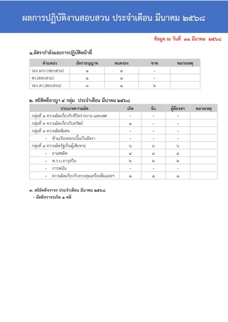 ผลการปฏิบัติงานสอบสวน ประจำเดือน มีนาคม 2567 ไฟล์ PDF คลิ๊ก ประจำเดือน กุมภาพันธ์ 2568 ไฟล์ PDF คลิ๊ก ประจำเดือน มกราคม 2568 ไฟล์ PDF คลิ๊ก ประจำเดือน ธันวาคม 2567 ไฟล์ PDF คลิ๊ก ประจำเดือน พฤศจิกายน 2567 ไฟล์ PDF คลิ๊ก ประจำเดือน ตุลาคม 2567 ไฟล์ PDF คลิ๊ก Share Facebook Twitter Stumbleupon LinkedIn Pinterest
