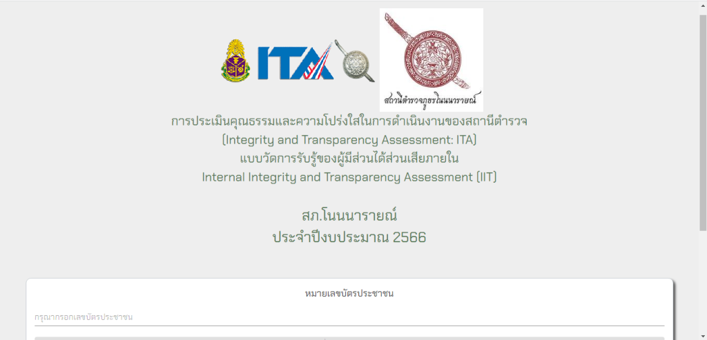 ขอเชิญชวน ผู้มารับบริการ / มาติดต่อ สถานีตํารวจ ร่วมจัดทําแบบวัดการรับรู้ของผู้มีส่วนได้ส่วนเสียภายนอก